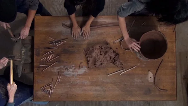 “Figures of Speech”(2016) reveals the normally hidden processes that allow materials to become functional. Performers transmute copper and clay into a speaker that is both object and subject—a vehicle for expression and a signifier of the precedent labor and the artist’s body of research. The performers themselves are conductors of sound and remind us of our own mechanisms to understand one another.